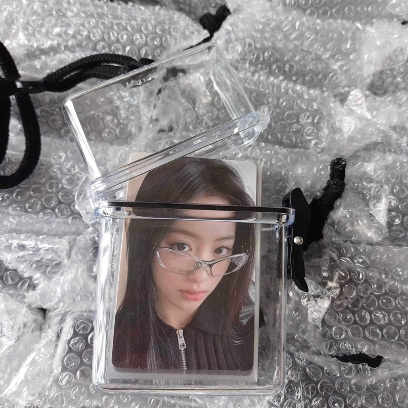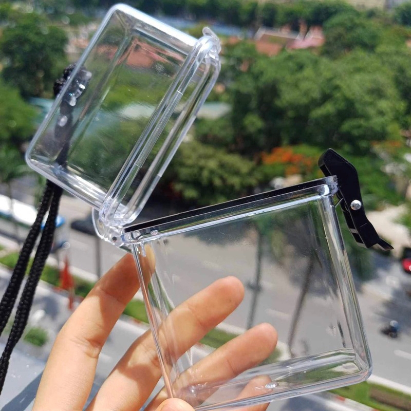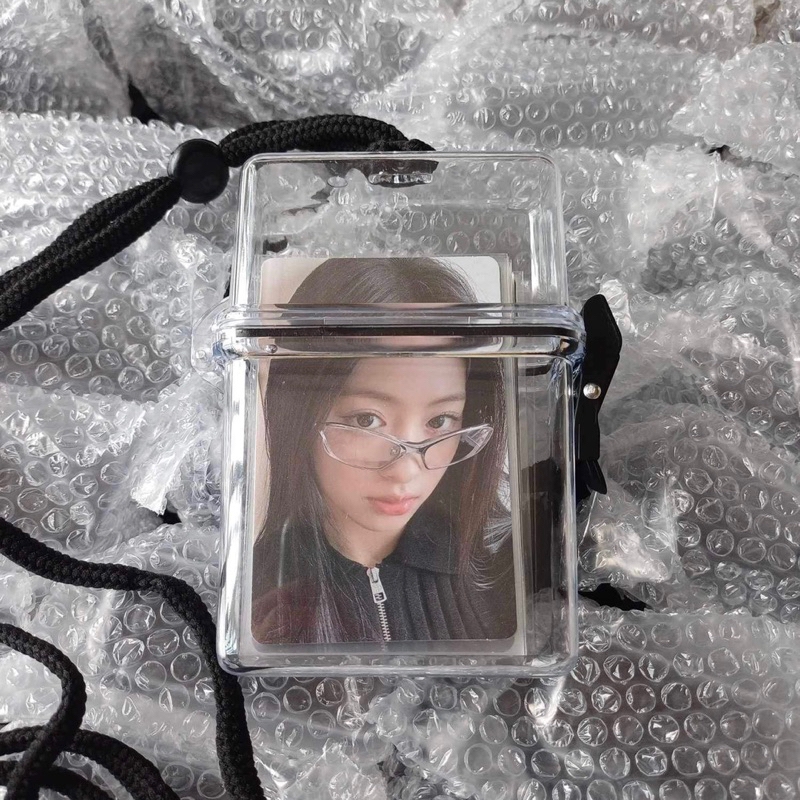 Hộp nhựa trong suốt, nắp cài, có dây đựng card, thẻ bo góc, phụ kiện